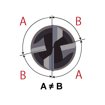(Φ 5 ~Φ 12) 55°ネジレ6 枚刃。 高硬度材~ HRC65 対応。 特殊コート採用により長寿命を実現。 刃径公差0 ~ -0.02mm